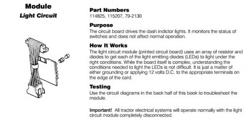 79-2130 idiot light module used 1991-1997 on the 520 models - (Page 3-12 of the Demystification Guide does not apply to the idiot light module and page 3-13 is a different module. 79-2130 should not be listed.)