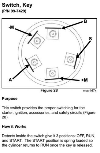 About This File Taken from #492-4761 Electrical Manual Used on Toro Workman 1100 Utility vehicle that has 3 key positions. Not aware of other applications but in the Demystification Guide. 1 page 115KB 99-7429 ignition switch for magneto ignition