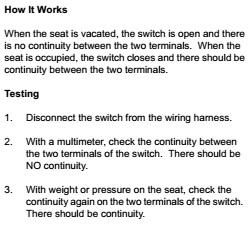 About This File Taken from #492-4761 Electrical manual Seat switch used 2001 and later description 100-3524 seat switch used on the 2002 315-8 model 73450 2004 71245