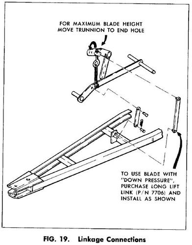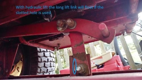 With hydraulic lift the float is accomplished by connecting the bottom of the link to the slotted hole. Down pressure is still available when the pin hits the bottom of the slot.