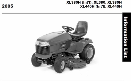 2005 XL 380 XL-Series Lawn Tractor model 71427 Recycler Serial 250000001-250999999