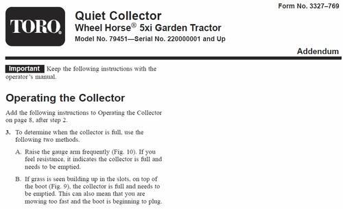 2001 14.0 cu. ft. Quiet Collector Vac Bagger model 79451 Serial 210000001-210999999