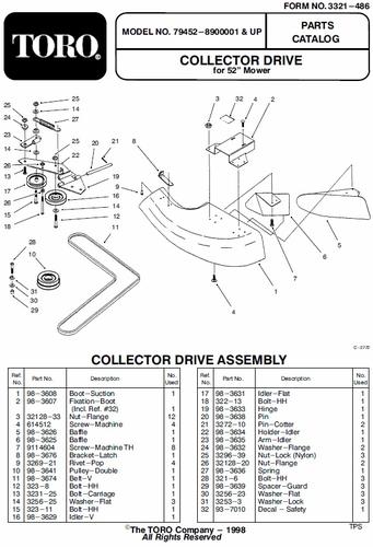 1998 Drive Kit 14.0 cu. ft. Quiet Collector Vac Bagger 52" model 79452 Serial 8900001-8999999