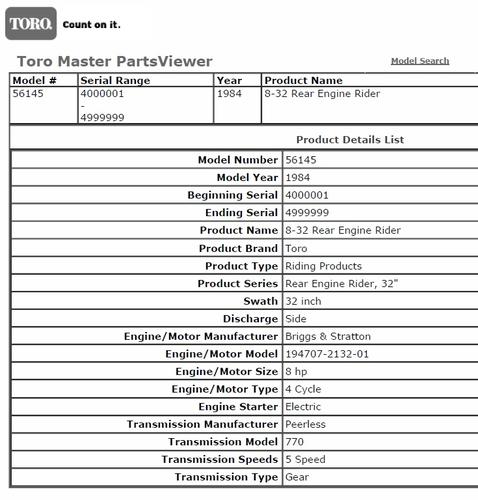 1984 8-32 Rear Engine Rider model 56145 Serial 4000001-4999999 - Electric start