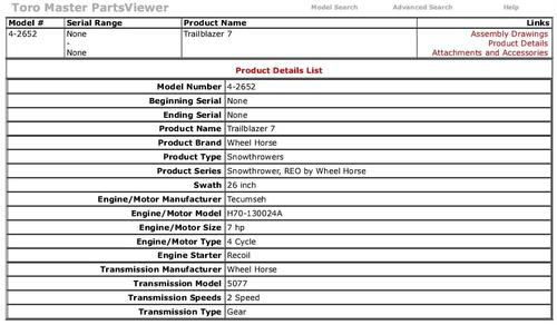 Details only - No attachment list but there was a 5-4321 32" rear discharge mower deck