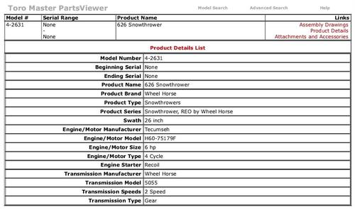 About This File Details only 1 page 37KB Named a model 626 at Toro Uses 5055 transmission 1967 26" snowthrower model 4-2631