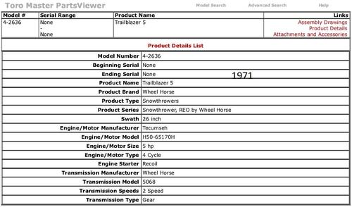 Snowthrower 1971 Trailblazer 5 model 4-2636