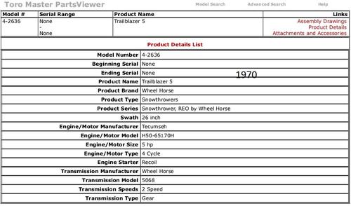 Snowthrower 1970 Trailblazer 5 model 4-2636