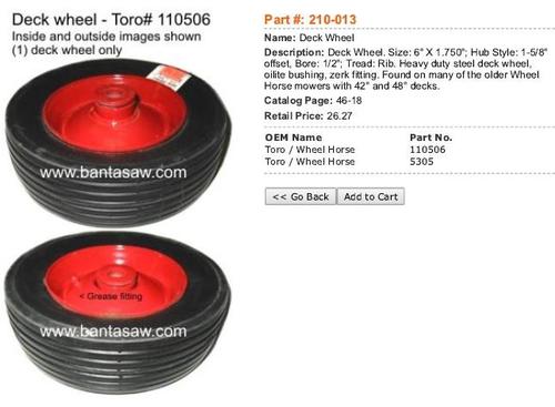 About This File 2877 replaced by 5305 replaced by 110506 (PartsTree $23.03 on May 12, 2019) - 6" x 1.75" Stens replacement 210-013 110506 is an alternate wheel for 6749 6749 (PartsTree $84.92 on May 12, 2019)