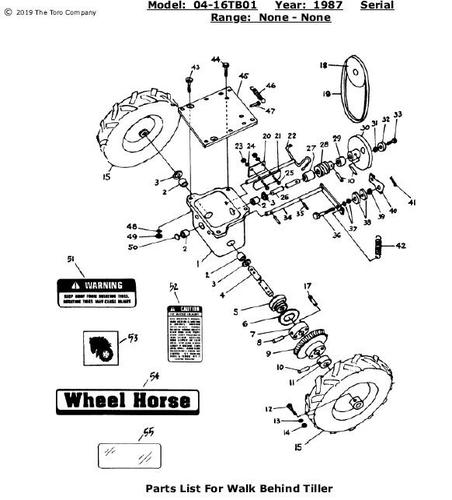About This File Details Illustrated parts list from Toro Master Parts Viewer 5 pages 214KB 1987 15" walking tiller model 04-16TB01