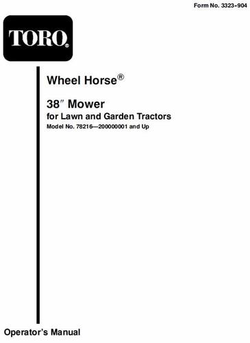 About This File Operator manual #3323-904 24 pages 815KB Fits 260-Series Mower Rotary 38in SD 2000 model 78216 Serial 200000001-200999999