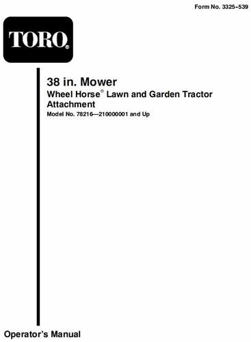 Mower Rotary 38in SD 2001 model 78216 Serial 210000001-210999999