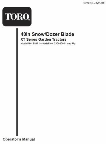 2004 48" Dozer/Snow blade model 79481 Serial 240000001-240999999