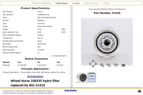 Wheel Horse 108335 (1980-1991 ) replaced by Wix 51410