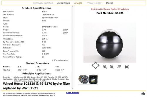 Wheel Horse 79-5270 (1992 - on) replaced by Wix 51521