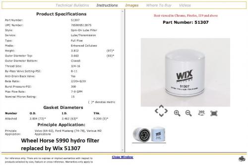 Wheel Horse 5990 (1965-1973) replaced by Wix 51307
