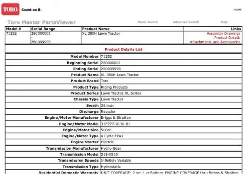 2008 Tractor XL 380H model 71252 Serial 280000001-280999999