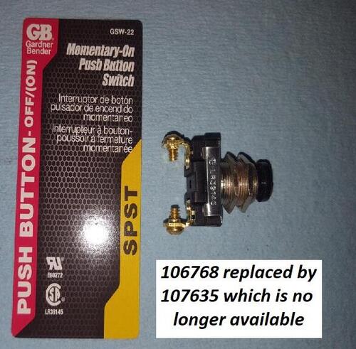 106768 Neutral push-button replaced by 107635 Push button switch with wire leads NO=Normally open - No longer available