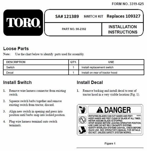 109327 replaced by 98-2392 Rocker switch kit (Wide terminals are NO=Normally open for starter circuit) (Narrow terminals are NC=Normally closed for ignition circuit) - White
