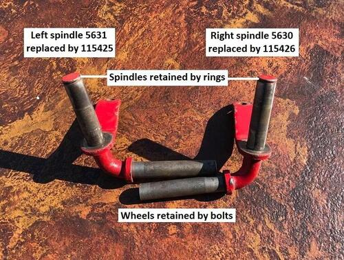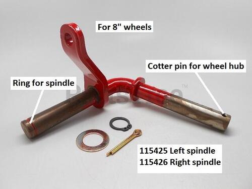 115425 left spindle used 1990 312-8 and 316-8 exported models (8" wheel hub retained by cotter pin - Spindle retained by ring)