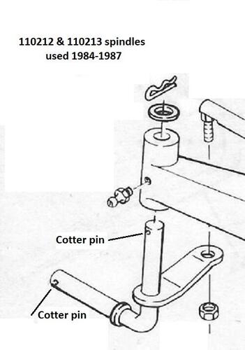 110212 right spindle used 1984-1987 (8" wheel hub retained by cotter pin - Spindle retained by cotter pin)