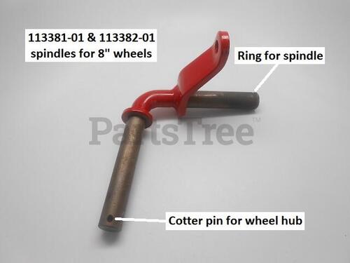 115426 right spindle used 1990 312-8 and 316-8 exported models (8" wheel hub retained by cotter pin - Spindle retained by ring)
