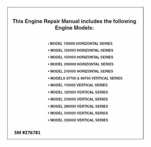 About This File Briggs & Stratton Single cylinder except Vanguard service manual 276781 179 pages 15MB More models 50032 85400 11A600 117400 118400 138400 185400 201400 202400 203400 204400 205400 206400 235400 245400 260700 261700