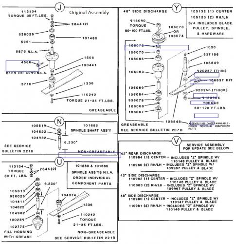 Mower spindle assemblies could be J, N, U, V, X or Z