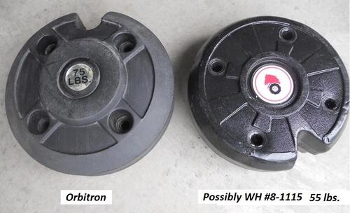 Model number 8-1117 or 81117 12" cast weight that fit flush inside or outside the rear wheel. Listed in a 1993 520-H parts manual.