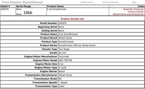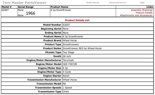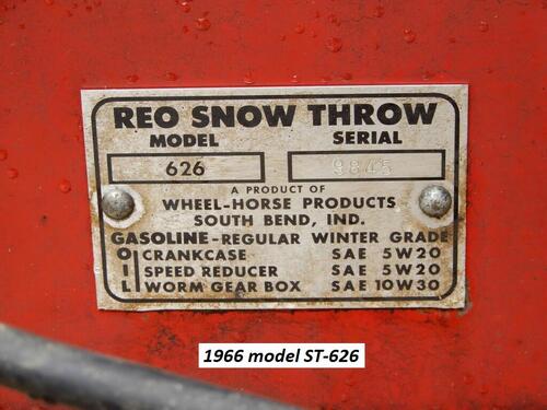 Toro lists a 1965 ST-626A model - Details are all that are available