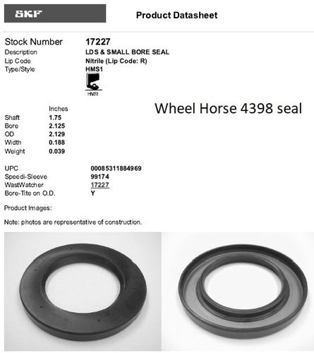 A possible replacement for the Wheel Horse 4398 pto seal used in the PT-5 and 8-3411 pto clutch