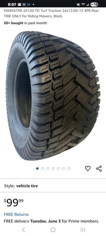 MainelyWheelhorse 2,255 #168 Posted May 22 So far I like the Duro 23X10.50x12 AG tires I got from @ebinmaine They grip well and don’t seem to rip up the lawn much if at all. 1 Share this post Link to post Share on other sites
