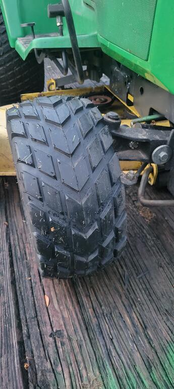 ebinmaine 74,113 #184 Posted July 16 On 12/15/2024 at 4:37 PM, ebinmaine said: Here we have some BKT TR315 Trencher/Agricultural tires. 23 x 10.50 x 12 I don't have these mounted yet. They measure 21 3/4" x 9 1/2" as setting. They'll definitely grow some with the rated 20 lbs air pressure. 4 ply. These are available online for anywhere from $90 to $120 each all year. I paid $80 each on a sale. November 2024. I believe these will be excellent for our particular usage. I like a slightly heavier duty tire than most. These have a good aggressive sharp square edged full width bar 45⁰ ish AG tread which should self clean nicely and also retain decent ride quality for those who like a smoother tire. My usage is on mid 70s C Series. Stock size was 8.5 wide. The added couple inches MAY cause clearance issues with Automatics. Spacers solve that. @AlexR 1 Share this post Link to post Share on other sites