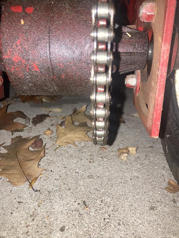 WHX?? 53,289 #55 Posted November 8, 2023 (edited) More here Richard. Charger out and on the bench for a cleaning, inspection and cordadectomy... Drive chain... rusted badly and more than one link won't turn. At least a dozen master links in it. Wrong chain to boot I suspect. What was on ther is a #41. Pretty sure it should be the more common to horses # 40. Huge difference In size. A 41 is more like a bicycle chain but same pitch as a 40. @SylvanLakeWH if you could confirm it should be a 40 that would be appreciated. IPL doesn't list the correct size but sprockets look to handle a 40 . Will be stamped on the side plates . #40 is used on all blowers and I have yards of it. 41 on top. Edited November 8, 2023 by WHX?? 3 1 Share this post Link to post Share on other sites