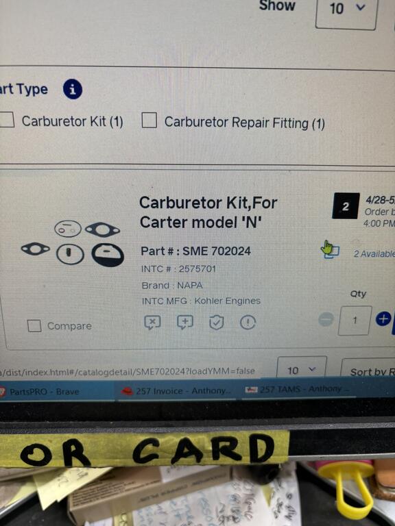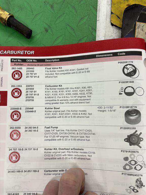 Question, does anyone know the Wheel Horse Part# for a carb kit? I found a # in my small engine book Part# 2575701s, but I want to be sure it is right before ordering it. TIA