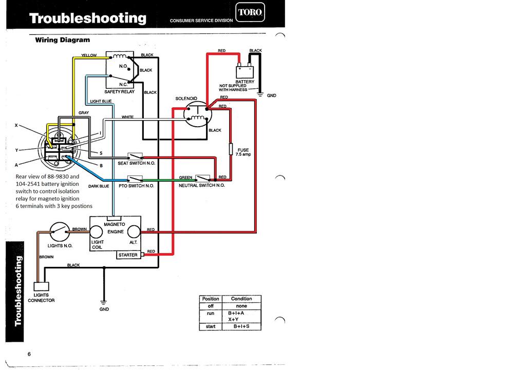 Carver 9 #6 Posted March 18 Thanks so VERY much to everyone. On my Toro Bronco the engine will not start if the seat switch circuit is not open. I actually had to put a small piece of a snap tie in it temporarily to hold it open when I am working on it and need to start the mower. since this one started OK I assumed that the missing switch was normally open. There is no padding on the seat and the connector under the seat is not connected to anything. I will try closing the circuit between these two wires and see what that does. I'll post up when I get this tested this morning but in the mean time, here are the specs on the mower. Model # 71184 Serial # 5913019 does the serial give a hint of the year of manufacture? 1 Share this post Link to post Share on other sites