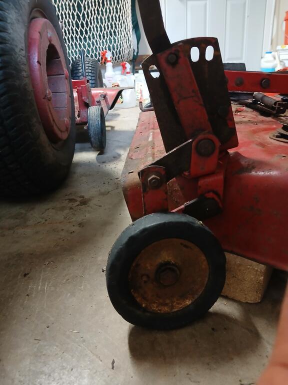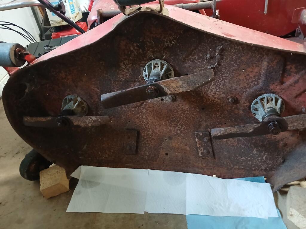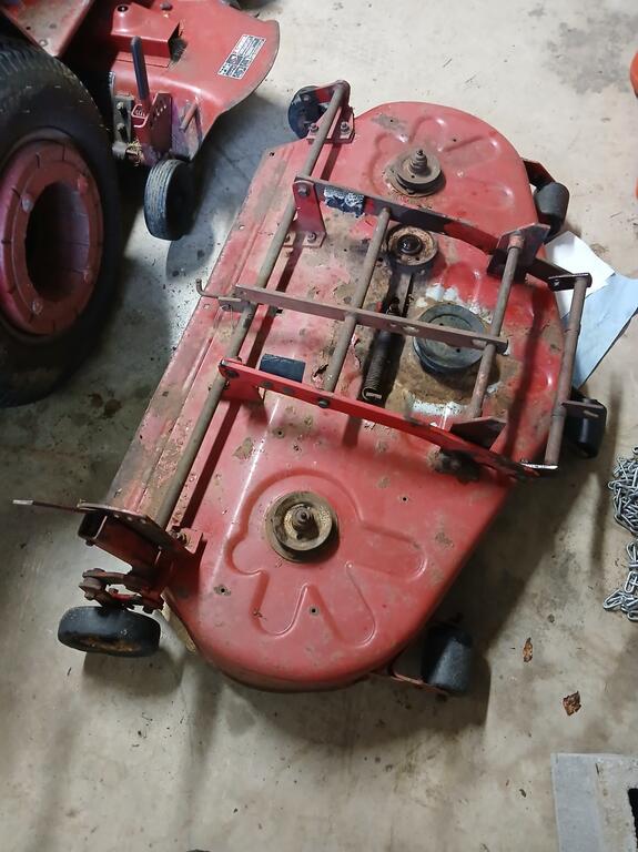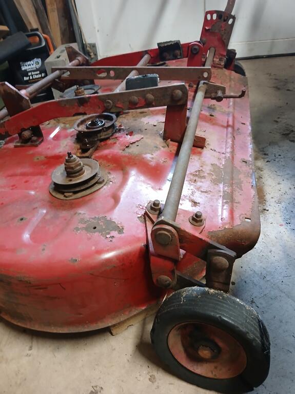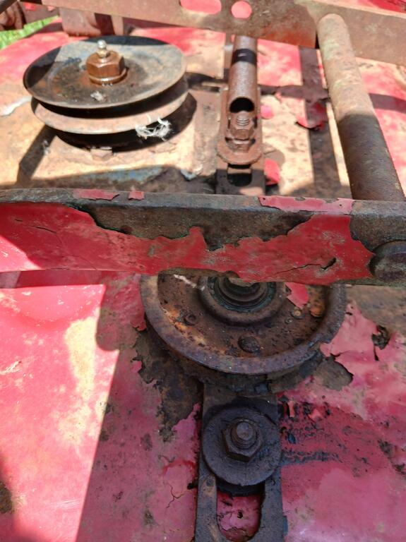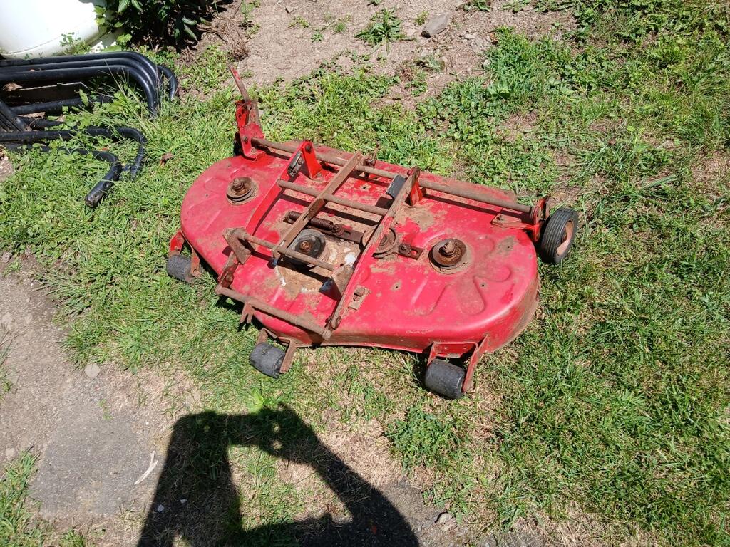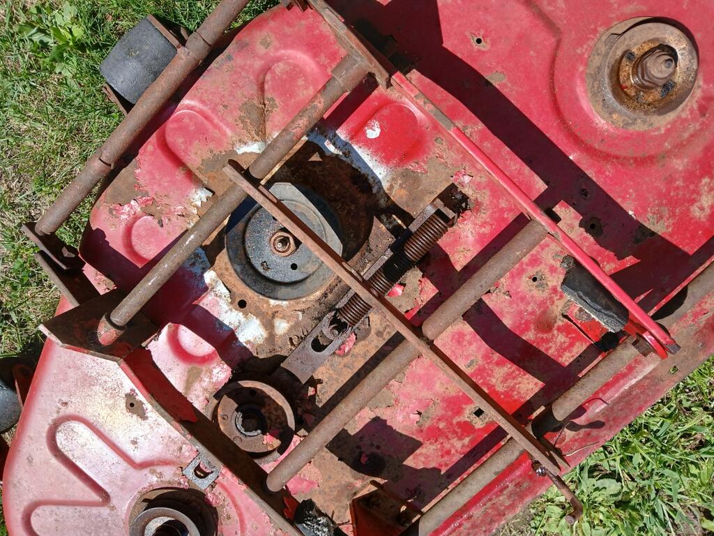 conehead 14 #1 Posted August 24 Good afternoon, Wheel Horse Wizards. I have acquired a 42" rear discharge deck that needs some TLC. There are no labels/identification to be found. Clearly some work needs to be done to return this deck to working order. Any information you can glean from the photos would be very much appreciated. Conehead Share this post Link to post Share on other sites