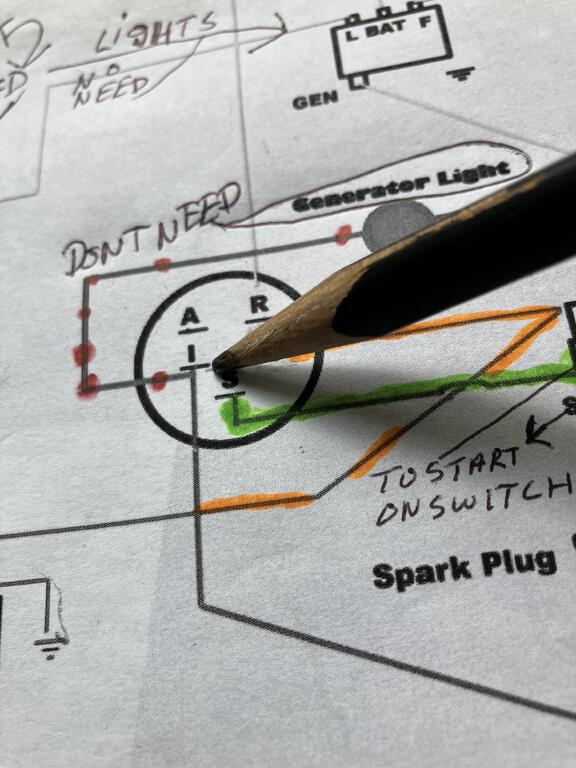 squonk 44,386 #12 Posted September 21 (edited) In Jim's pic the large red is battery feed, the blue wire is to the bat terminal of the switch. The long small black wire is from the switch start terminal. The large black is to the Armature terminal of the genny and the small black wire on the 2nd small terminal is the ground. Edited September 21 by squonk 1 1 1 Share this post Link to post Share on other sites