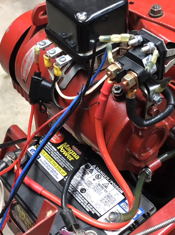 Handy Don 14,490 #20 Posted September 25 (edited) 6 hours ago, Retired Wrencher said: Hi Richard, in this picture below the 25 amp fuse goes from positive side of the battery to the lights or L on the voltage regulator? 5 hours ago, 953 nut said: The picture you attached was from @Handy Don, The fuse shown apparently would be from the "L" terminal of the voltage regulator to the lights if this is a four terminal regulator. Perhaps Don will join the thread and confirm this. Glad to. My apologies. In the setup pictured, I should have called out that this was an after-market regulator where the terminals were not in their usual places. They were (Left to Right): BAT, GEN, F. There was no L. (See * below for when/why L and BAT act differently.) The picture was really to respond to the solenoid mounting question in the thread! 😁 Since that shot was made, the aftermarket regulator failed (shocking!) but I was able to replace it with an “original” Delco, now installed, with terminals in the expected places and wired per the diagram in post #11. (And yes, this worker tractor needs a bath!) Sorry for the confusion! 😢 * Why are L and BAT different? Some regulators can gradually decrease the charging current deivered from the BAT terminal to prevent “cooking” a fully charged battery in hot weather. The L terminal always gets full voltage and current. The “don’t cook” regulators have three electromagnets inside. On regulators with only two electromagnets, L and BAT are electrically identical. Edited September 25 by Handy Don Share this post Link to post Share on other sites