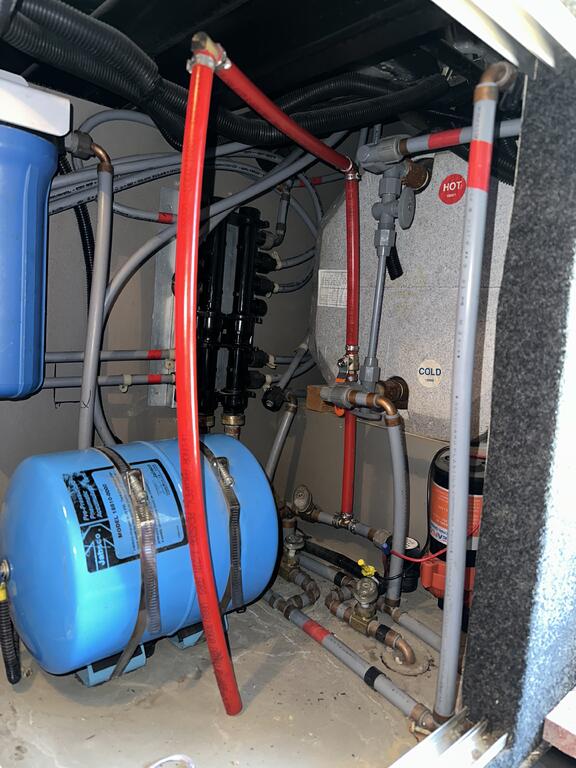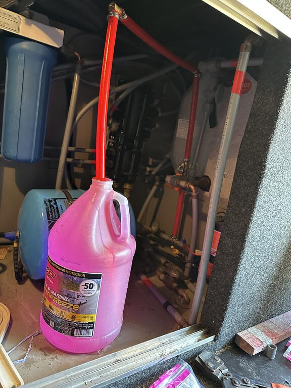 Pullstart 68,383 #75 Posted November 6 Last weekend, some friends came over to camp in the driveway with their RV one last time before winter. We messed around with the WTFPOS / Dy NASTY getting the water flowing well and running some through the tanks. I wanted to drain the black and grey waters before winter but didn’t have much in there to do so. Once we got the mud out of the filter cartridges, and a clog blown out of the cold manifold with some air pressure, I was ready to make winterization modifications. There are low point drains for the fresh water tank, cold and hot water lines, and they even drain the water heater. I then cut the tube between the tank shut off valve and pump, installed a tee and anther valve, then a hangman style suction tube. It works great to slide into a jug of pink and send it through the system! 2 Share this post Link to post Share on other sites