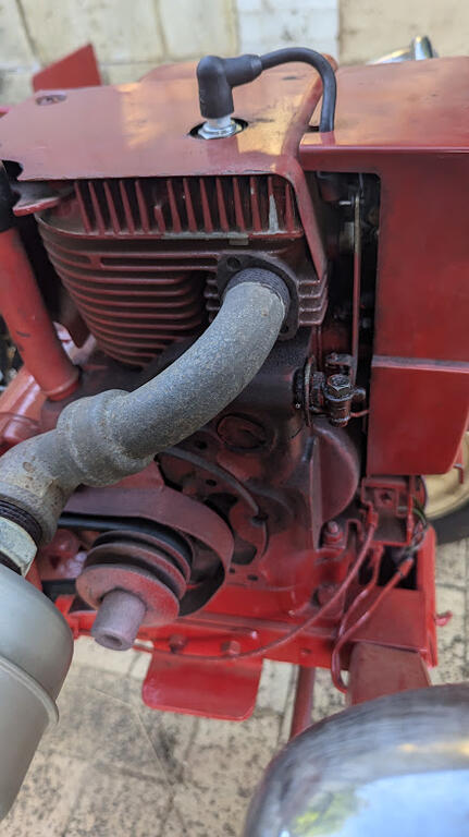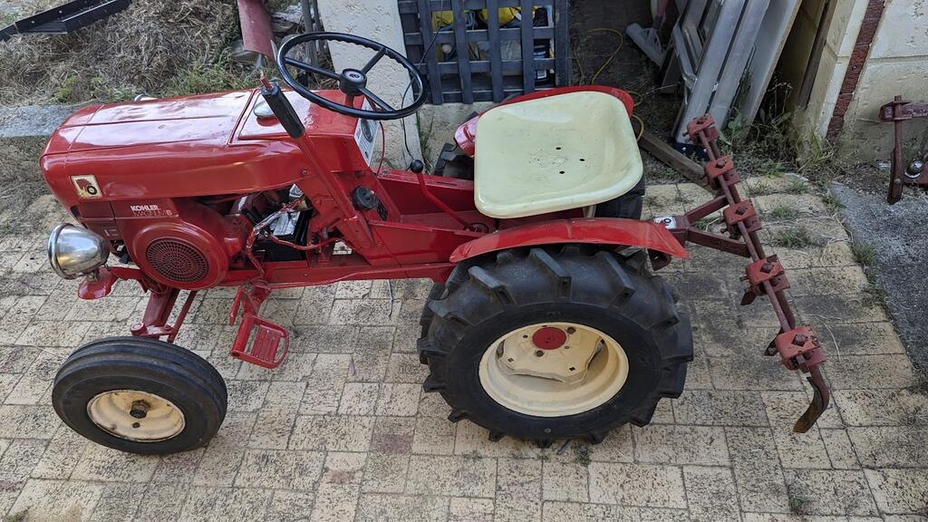 Armstrod 7 #1 Posted September 24 Hi Wheelhorse Gurus, I'm hoping I to ask some expert advice and avoid wasting too much time & money attaching a deck to what I think is a 702 with a magnum 8 motor. I'm located in Western Australia, and have what I think is a 702. No one knows how it got here, best guess is a private collector, but I've been lucky enough to be its current custodian. Fair warning, everything I've written up below is my best guess based on internet sleuthing. Freely admit I've no idea what I'm talking about here. Quick Details on the tractor: Serial No: 62-24420, 3 Speed gearbox with reverse, Will attach some pictures. At some point it had its motor swapped for a Kohler Magnum 8, M8S model, spec No 301502. The deck it came with is a later 75-36XR model. My motor has the 60's one piece main pulley. It would have used a mid mount idler pulley/belt slip style clutch (4239?) to drive a gear driven early 60's deck with a vertical input pulley. My deck has a horizontal pulley. I'd love to get an early 60's gear driven deck but cant find them for sale online and the shipping cost would be heart stopping. No luck sourcing other options locally for mower decks with a vertical input pulley. My plan now is to source parts from the US, but unless I get incredibly lucky on ebay and find a seller that can supply everything I need in a single shipment, this tends to double to triple the cost of parts due to shipping. To try and make this problem manageable I've broken it into two. How to a) mount the 36" deck to the 702, and b) send power to it. A) Mounting a 75-36XR deck to a 702 I think I just need to replace some missing linkages from the deck/grind off some modifications that were made to it, and source a mid mount hitch. Parts I think will sort this are below: Deck leveller bar, 102958 Deck Front Shaft Bar, 102570 Rod Level Adjust, 101828 Trunnion Lift, 6739 Mid Tach-O-Matic Hitch, 8-5211 The bar that connects the wheelhorse's lift lever to the deck, will just drill some holes in steel bar. All up about $500 in parts. Pricey but manageable. Drive a 75-36XR deck with a Kohler Magnum 8 mounted to a 702. This is where I come unstuck. However I work it the prices blow out, or it requires extensive fabrication. I feel like there has to be a better way than the ones I've been able to find. Options I've identified Front Mount mule drive, the standard approach. Problems: path of belts is likely to conflict with the headlight arms. Sheer cost. I believe something like a c series PTO can be swapped in and out but the cost of parts add up at an outrageous rate; PTO clutch assembly (8/3112) $207, Main Pulley (101857) $175, Front Hitch Adapter (8-5541) $350, Front Mule Drive (6-6212) $210 etc etc. and that's with me having to fabricate a control arm, source a belt, deal with used part issues, missing bolts etc. I easily pushing past a grand to run a belt to the deck. Am I just missing something obvious? Mid mount mule drive from a charger/raider type setup. Need to swap out main pulley for PTO clutch again, and find a way of mounting the second pulley from the mule drive that would normally be attached to the arm of the deck on a raider. Given fabrication will be needed anyway, this may warrant going for a idler pulley/belt slip type clutch arrangement, and eliminate both cost of a clutched PTO conversion and front mule drive. Problem is a lot of variables for belt paths, pulley angles, tensions etc. I'm happy to fabricate, but reverse engineering a full solution with no schematics/measurements etc. is a long tedious path of worn belts and slipping off the pulleys etc. and that's not much fun. Or I Completely customise and detach the power supply. Electric motor mounted directly to the deck and running off a power bank, or trying to convert the deck to a slasher, and mounting it out the back. Quite obviously not original or period correct. And that's where I'm at with it. Three options identified, all not great. Super grateful for any suggestions on how to hook this deck up in a better way. 5 Share this post Link to post Share on other sites