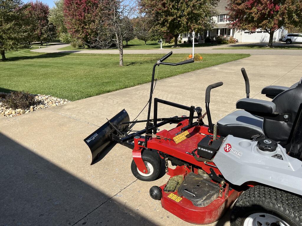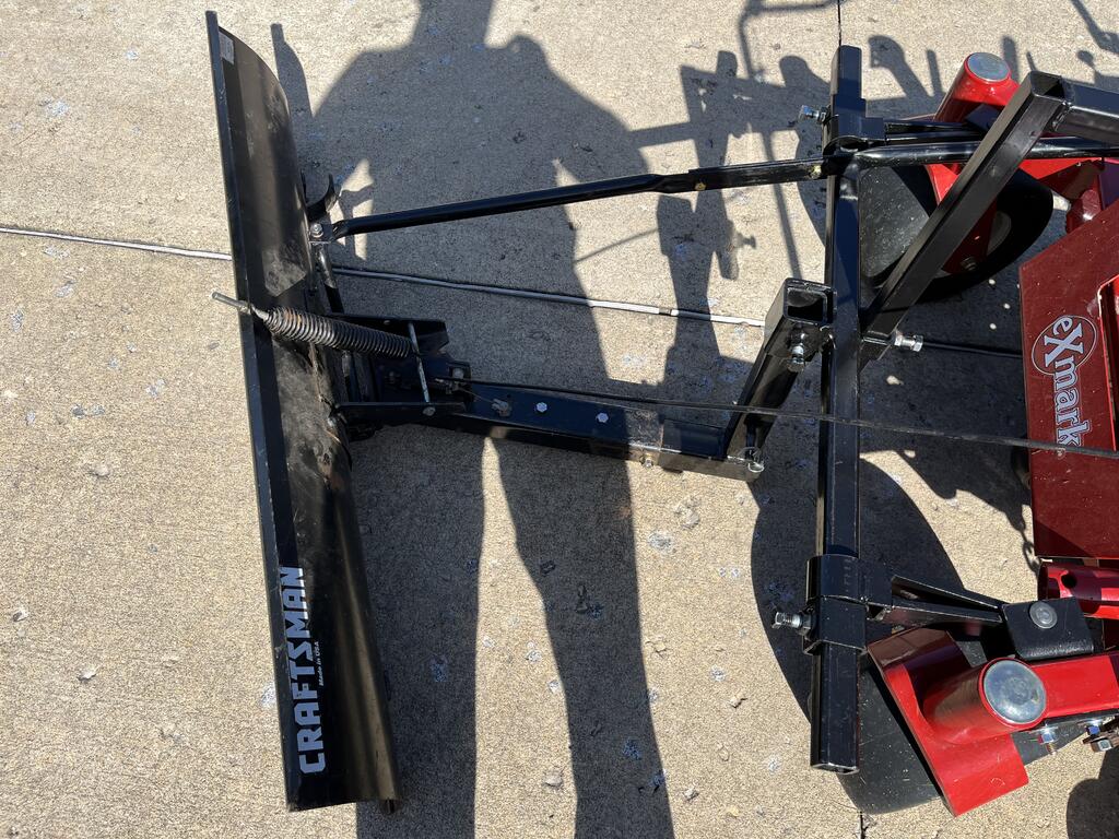 DET 111 #6 Posted October 20 Here are some pics of what I did. Originally bought the Craftsman plow and intended to mount on the Exmark. Looking on the internet for ideas on how to mount it I found a company in Mansfield Ohio that I bought the needed mounting hardware from. The Craftsman blade lets me be able to angle the blade and has the tip mechanism. I’ve used it the last 3 years and it has worked well. 2 Share this post Link to post Share on other sites