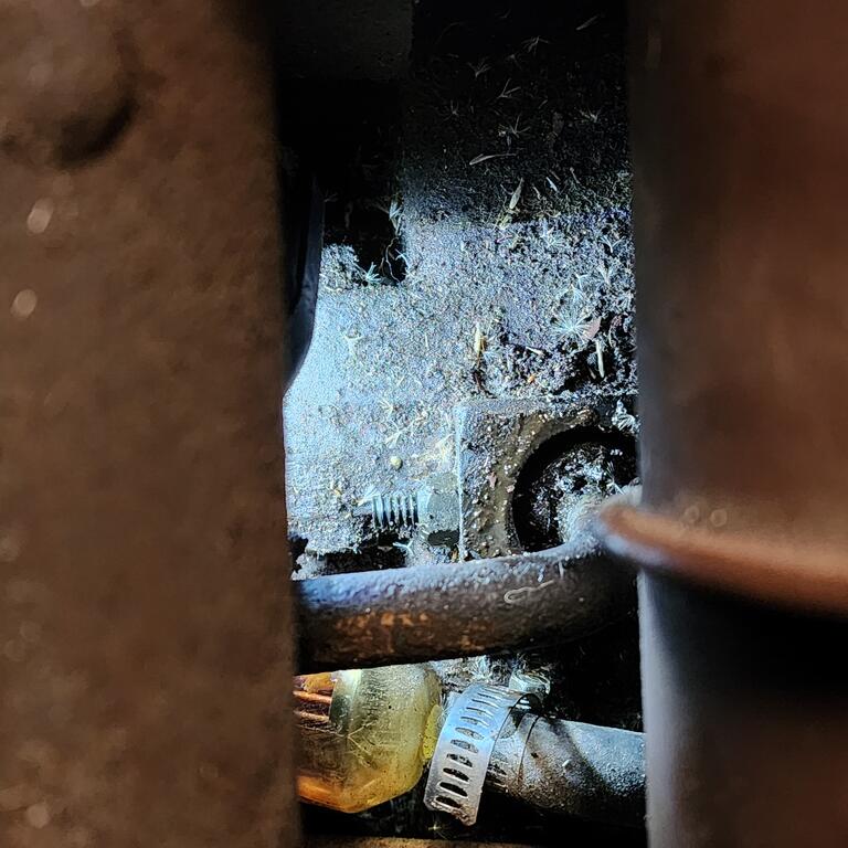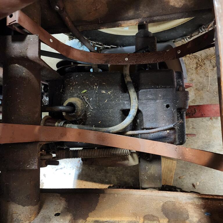 cafoose 3,489 #12 Posted October 27 On 10/25/2025 at 7:17 PM, Ed Kennell said: Chuck, I'm not sure if will help, but I cut a hole on the seat pan so I could remove the fuel tank from the top. The plate covering the hole is bolted on. These 953s were made with a totally welded frame and seat pan assembly. I assume the frame was then turned upside down to install the fuel tank and the transmission. @Ed Kennell, I was able to replace the dog point screw without dropping the transaxle I tried rethreading the screw but it broke in two I found the new screws I got at the big show several years ago so I put one of those in. Now the shifter works great However, I noticed the gas tank is leaking again How can I seal it? Maybe someone has a good used tank? @953 nut? By the way, how did you get the screws in the plate holding the straps? I can't get my hands in there to lift the straps to start the screws. 1 1 Share this post Link to post Share on other sites