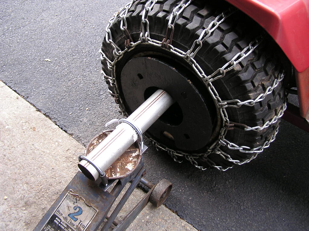 ri702bill 10,044 #1 Posted 4 hours ago I added an additional 20 lb barbell weight plate to my existing Bolens 75 pounders, as there was enough room for it in the C81 wheel... the problem is they now weigh 95 pounds each and are a bear to install. Solution - adapt the floor jack to lift & center the weights..... works well. 3 5 Share this post Link to post Share on other sites