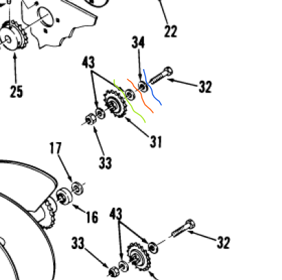Sbaughman 0 #1 Posted Sunday at 05:12 PM Quick, and probably dumb, question: Where does the frame of the blower assembly itself fit in this diagram (Blue Line, Red Line, or Green Line) between washer (#42) and spacer (#34)? Chain jammed and I removed the pulley to clear the chain, in the process, I hadn't realized the spacer and didn't register where it was originally. The parts schematic doesn't make it idiot-proof clear where the space goes in relation to the blower side wall itself. Thanks for any help you can give! Share this post Link to post Share on other sites