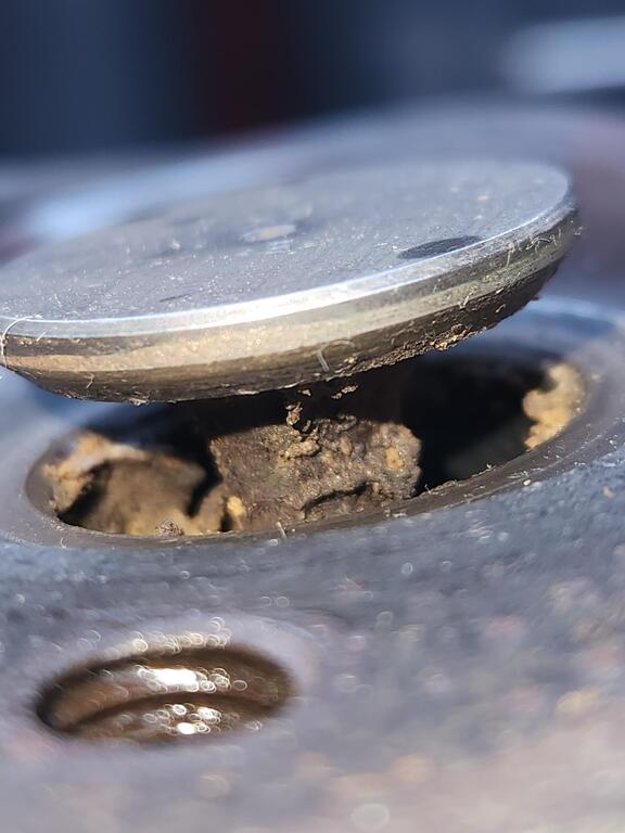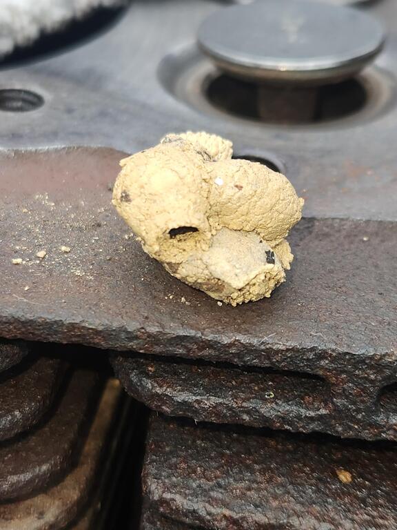 CD Long Jr 120 #1 Posted 2 hours ago I was settin' in the shed havin' my 1st coffee & a cigarette. A reply in my original post about the exhaust valve kept eatin' at me. "Looks like a food fight goin' on in there". I got to thinkin', carbon is black, this crap is brown. I got a pick and poked around; it crumpled. I have never seen carbon crumble. I remembered the homemade muffler had some big holes in it so I removed it. Fired up the air compressor, put on a 12" blow nozzle, stood back & blew around the exhaust. Crap went everywhere, then a mud dubber nest came out. 2 1 Share this post Link to post Share on other sites