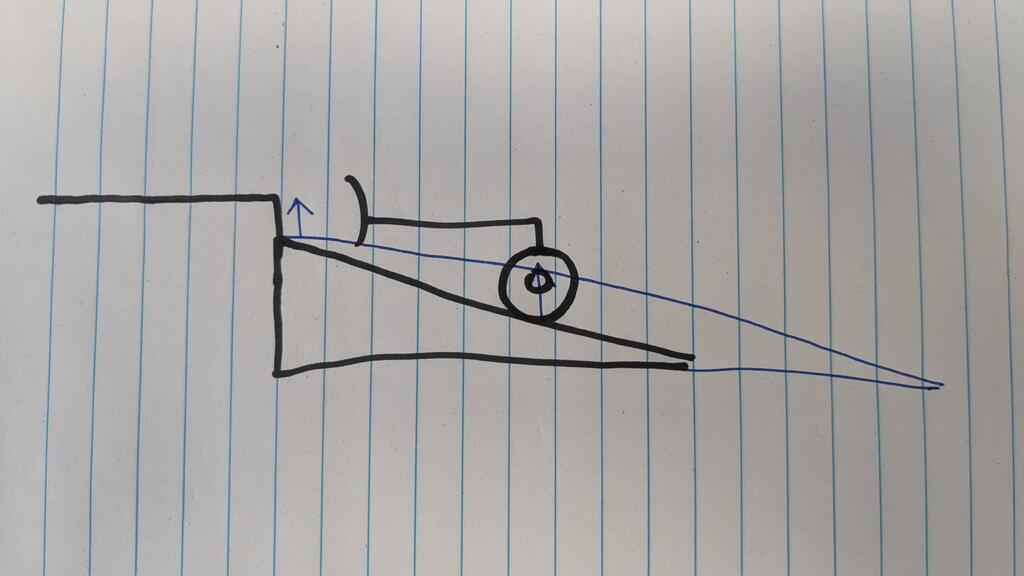 Alrashid2 444 #76 Posted 2 hours ago (edited) 1 hour ago, pfrederi said: Why not adjust the ramp up into the shed so it doesn't hit. Over time the ramp into my storage shed shifts and I have to periodically make an adjustment Easier than modifing the Wheel Horse. So I went from a math approach again. When the plow hits the shed opening, the wheels are only on the first or second board of the shed. In order to raise the plow high enough to clear the shed, I'd have to build a new ramp and extend it over 5 feet. Just wouldn't work out for me. I'll draw up a quick picture Sorry for the bad art skills. Hope this makes sense. Side profile view of the ramp and plow/front wheel. Just an approximation, I don't have the exact math and measurements on me. But in order to raise the plow up a few inches to clear the opening, the front wheel also has to raise a few inches, and in order to do that the ramp would nearly double in length which is too wide for where I have it. Gotta love trigonometry! Edited 2 hours ago by Alrashid2 Share this post Link to post Share on other sites