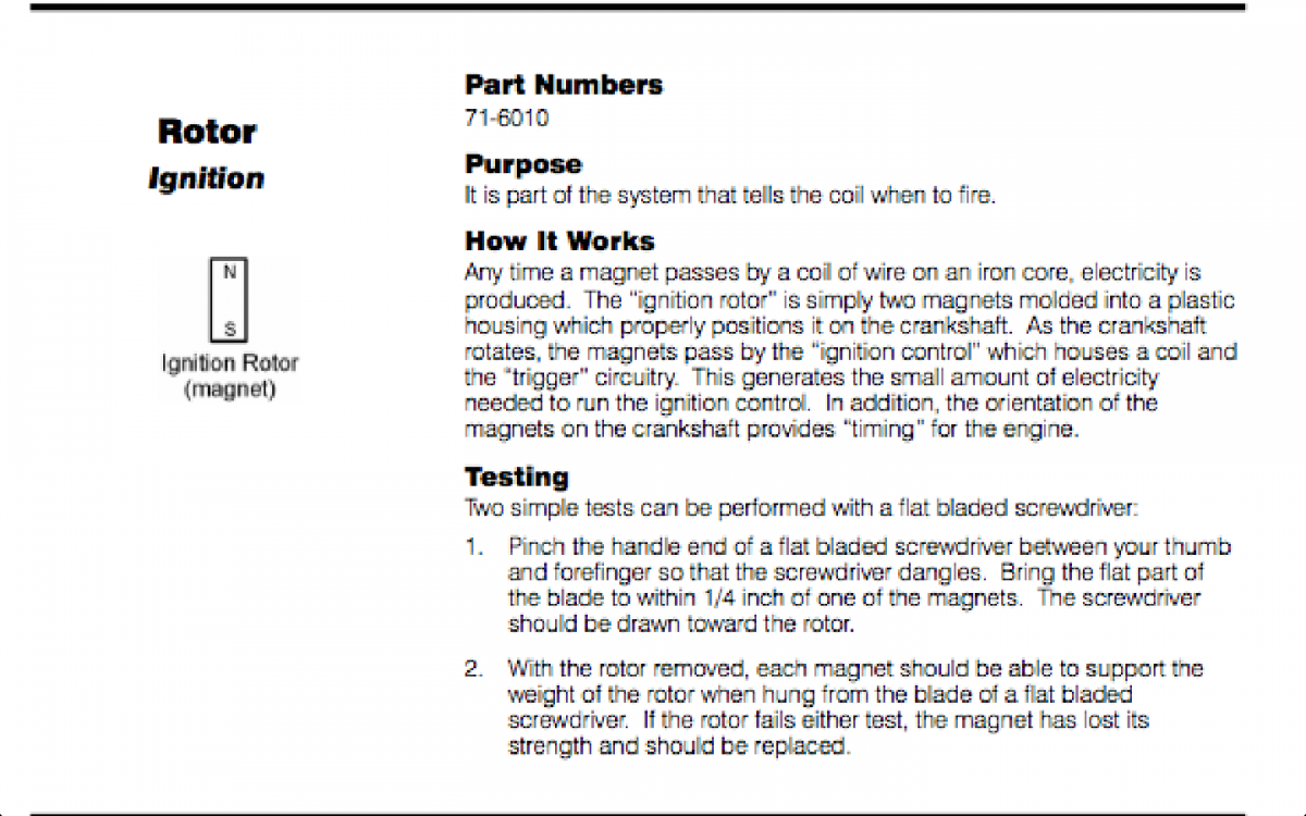 Martin 2,133 #1 Posted September 3, 2014 (edited) This thread deals with lack of spark or ignition issues with the P216, P218 and P220 engines used in the late 80s and all 90s tractors originally equipped with the Onan. this would be your 3,4,500 series tractors that typically look like the one below with the Onan twin engine...... Parts of the manuals you will need to diagnose the issue........ testing of these components is also in the demystification guide as well..... typical engine wiring diagram..... Aside from any other issues, the coil and/or module are usually the culprits IF anything needs replacing. I say that IF, because not always are the ignition components faulty. it can be a simple wiring or terminal issue not letting 12 volts to the coil. if any components need replacing here is the part numbers you will need.... Coil Toro Part # 71-6000 Onan Part #166-0761(old part #) superseded by part #541-0522 kit (includes a mounting bracket and 166-0820 coil to mount in the oem location) if you wanted to buy new. If looking for used or nos use the 166-0761 or if you don't care about using the oem looking coil, a 3 ohm Harley coil can be substituted. Module. Toro Part #71-6380, NN10444 (old number) Onan Part #166-0785 (insulator if you need to replace it is 166-0786) rarely do the rotor and condenser need replacing, but if you are after their part numbers here they are...... Rotor Toro Part #71-6010 Onan Part #166-0767 Condenser Toro Part #59-1180 Onan Part #312-0256 ​Places these parts can be purchased (shop around the prices vary big time) http://www.onanparts.com Your Local Toro dealer Ebay (harley coil) check with Boomer a recent new member on the forum as well. I've heard his prices are good. http://www.wheelhorseforum.com/user/13637-boomers-influence/ I just threw this together fairly quickly, i would like a few of you guys out there to critique or comment on what i have here. maybe it need some additional input, maybe some stuff needs changing. i put this together in the hopes of helping some new to the world of Onan get one with ignition issues hopefully up and running. Edited September 3, 2014 by Martin 9 1 Share this post Link to post Share on other sites