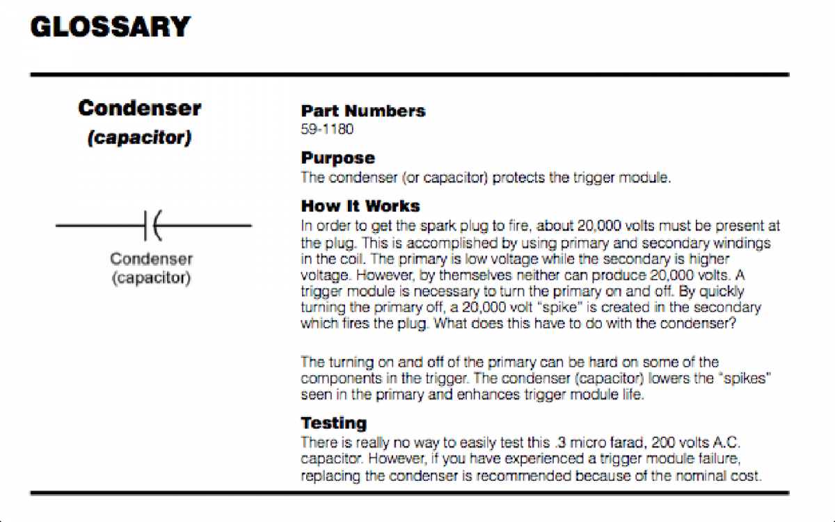 Jayzauto 89 #20 Posted February 26, 2017 GEvening Guys, I realize this is an old post, but for the sake of others in search of info, I'd like to add my .02. I am by no means a WH Specialist, but well versed in all things electrical. I noticed there is some confusion on modules here and testing. Definitely keep things simple and basic, "don't overthink it" is great advice. The adjustable spark tester is one the most valuable and basic tools that anyone that attempts their own repairs should have in the tool kit. It will quickly verify a no/spark condition, by actually loading the ignition coils. On modules....in their simplest forms, they are simply on/off 'switches', that will provide a ground to allow buildup of ignition coil charging. It is an electronic version of points. The 'Grease' supplied with ignition modules is a critical component. As a few (sorry, new and not familiar with names), have stated, similar in function to the GM modules of days gone by. That 'Grease' is actually called Die-electric grease. It's purpose is to ensure a good contact to the mounting base to allow heat transfer to the base. It will help prevent corrosion from building up between the module and base. That bond is necessary to prevent the heat buildup of the switching action, and heat is what will 'Kill' the module. The mounting 'Screws' with star washers ensure a sound ground point. This ground point is used to ground the (-) side of ignition coil to allow coil charging. The transistors (Switch/es) inside the module, will break that ground connection, allowing the magnetic field of the ignition coil to collapse, and induce the multiplication of power in the secondary, through the cables to jump the spark plug gap. Other parts in the module will affect ignition timing control, as well as the input from a pick-up coil (not exactly sure where on the Onan), but represents TDC (roughly) according to camshaft position. So in essence, the main parts will be: Pickup coil, Ignition module, Ignition coil, secondary leads (plug wires) and Spark plugs, and of course, primary wiring through the key switch. So other than access to said components, which apparently is tougher on the Onan, testing the whole ignition system can quickly be diagnosed with a spark tester, test light( or preferably a quality volt meter) and a starter button. If anyone would care to 'Donate" a 520, I will gladly teach quick and EZ testing procedures. GLuck, Jay 1 Share this post Link to post Share on other sites