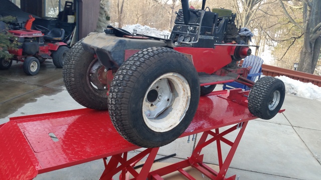 steve k 82 #7 Posted March 14, 2015 I bought one of the smaller ones and love it. You can sit in a chair and work all around it. Just used some blocks in the center. wheels come off easy when they are dangling. One problem though , it will not go low enough to just slide under this lawn ranger so some fussing around is needed to get it on and off but no big deal for less than $200. Also use the lift for my hit and miss engines. 3 Share this post Link to post Share on other sites